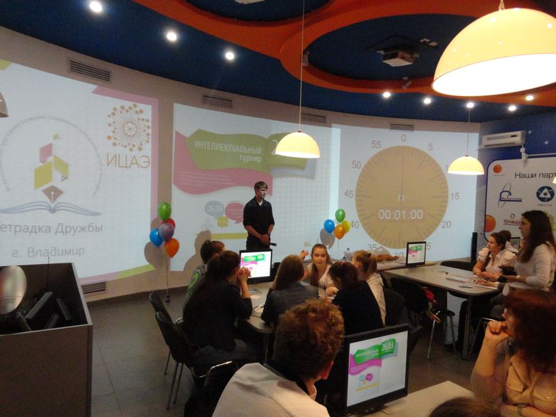 26 марта в информационном центре по атомной энергии города Владимира кураторы и участники проекта «Тетрадка дружбы» встретились на интеллектуальном турнире «Литературный бум», прошедшем по правилам спортивной версии игры «Что? Где? Когда?». Организаторами турнира стали управление по делам молодежи администрации г. Владимира, добровольческое движение «Доброштаб», Автономная некоммерческая организация «Клуб творческих и интеллектуальных инициатив», Информационный центр по атомной энергии города Владимира.