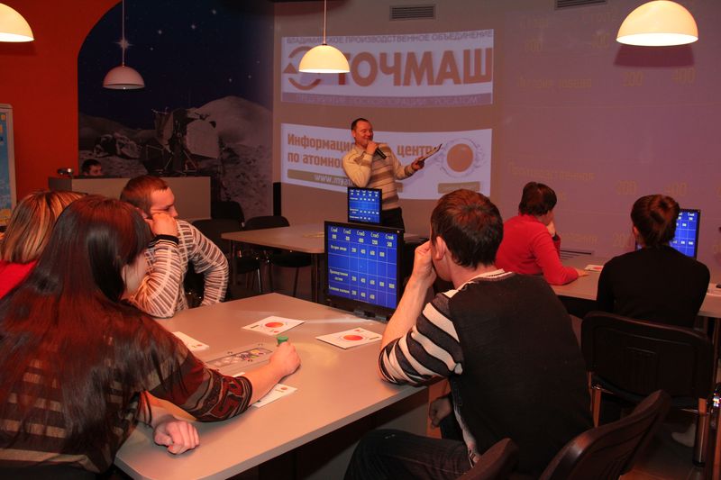 В течение полугода информационный центр по атомной энергии еженедельно посещали группы молодежи из разных отделов и подразделений предприятия. Сначала участники отправлялись в путешествие в мир атомной энергии (именно так называется одна из интерактивных образовательных программ ИЦАО). В программе в увлекательной форме рассказывается о том, для чего нужна атомная энергия и каким образом человек её получает. В программу встроены блоки интерактивной проверки знаний об атомной отрасли. Вторая часть мероприятия — викторина. В формате «Своей игры» команды отвечают на вопросы по атомной энергетике, а также на вопросы, касающиеся деятельности «Точмаша», топливной компании ТВЭЛ и ГК «Росатом»». Это момент можно назвать самым эмоциональным: все хотят первыми вспомнить правильный ответ, успеть вовремя нажать кнопку на столе и получить право выбора следующего вопроса. После активной игры молодёжи снова даётся время для получения новой интересной информации. Научно-популярный фильм «Элемент будущего» повествует о том, как в нашей стране добывается уран, как и где его обогащают и, конечно, каким образом из урановой руды, в конце концов, получается то топливо, которое согревает и освещает дома жителей нашей планеты. Марина Мартынова, ведущий бухгалтер ОАО «ВПО «Точмаш»: «Мы как будто попали в заколдованный мир. Очень понравились и программа с интерактивными элементами, и фильм, и, конечно же, игра. Я поняла, что мне еще есть что узнать о родном предприятии и атомной отрасли»».
