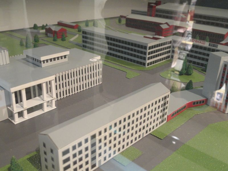 Следующим этапом экскурсии стало посещение музея «Точмаша». История завода тесно переплетена с историей людей, руководивших предприятием, а также с историей родного города и всей страны. Так, открытая в 1925 году в корпусах дореволюционной бумаго-ткацкой фабрики фабрика «Пионер» стала первым пролетарским предприятием Владимира, и при ней же уже через 4 года появились первые в городе ясли, школа, клуб и баня для работников завода. Ясли работали круглосуточно, чтобы молодые родители могли трудиться на благо страны. Днем рождения «Точмаша» считается 29 декабря 1933 года. С 1941 года производство передается грамзаводу, который, будучи одним из цехов «Пионера», с 1933 года производил лучшие в СССР иголки для патефонов. Именно эти корундовые иголки стали первым шагом к будущему производству газовых центрифуг — устройств для получения урана-235 и урана-238, использующихся в качестве топлива для АЭС. Центрифуги и их комплектующие изготавливались на «Точмаше» до 2012 года. Работники завода пережили и репрессии конца 30-х годов, когда был арестован директор, и годы Великой Отечественной войны, когда мужчин у станков заменили женщины и дети, а основной продукцией были снаряды и взрыватели. Рассматривая стенды с послевоенной продукцией мирного назначения, учителя с чувством легкой ностальгии узнавали и часы марки «Весна», и магнитофоны «Нерль», и люстры с зеркалами, которые в восьмидесятые-девяностые годы были в домах почти каждого владимирца.